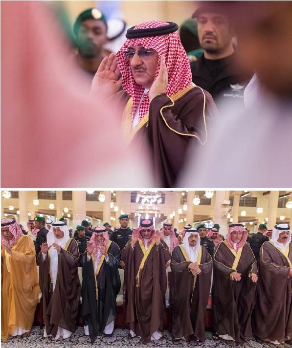 صور لولي العهد الأمير محمد بن نايف أثناء أداء صلاة الميت على الأميرة سارة بنت سعود الكبير، بجامع الإمام تركي بن عبدالله بالرياض، حيث أمّ المصلين مفتي عام المملكة الشيخ عبدالعزيز آل الشيخ.