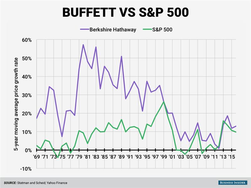 وعلى مر الزمن، تفوق أداء "بافيت" من الناحية الاستثمارية أمام أداء عدد من المستثمرين، وذلك حسب أداء مؤشر "اس آند بي 500"، والذي يضم أسهم أكبر 500 شركة مالية أمريكية من بنوك ومؤسسات مالية، ومن ثم يقيس أداءهم في السوق الأمريكي.