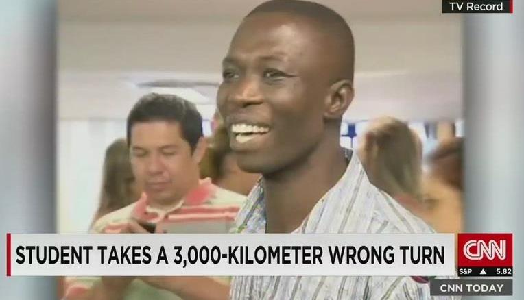لكنه وجد نفسه في مدينة غويانيا البرازيلية على بعد 3 آلاف كيلومتر من وجهته المقصودة، في النهاية مكث أسبوعاً لأنه لم يملك المال الكافي لبلوغ وجهته لتساعده شركة الطيران أخيراً.