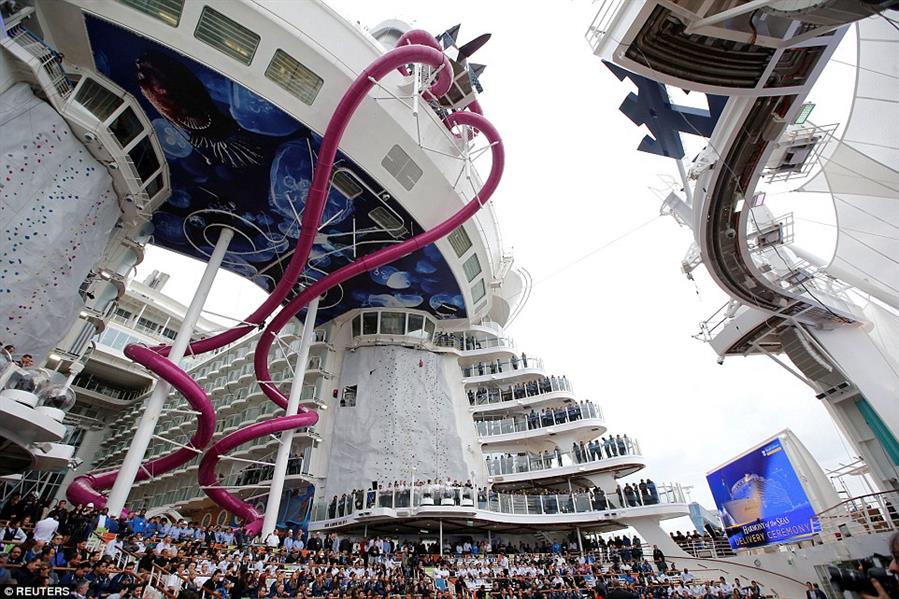 وتضم السفينة العملاقة 18 طابقًا، و2,750 غرفة، و16 مكانًا مُخصصًا للاسترخاء على سطح المركب، و20 مطعمًا، و23 حمام سباحة، وقد صُممت لتسع 5,479 ضيف، و2,100 فرد بين طاقم العمل.