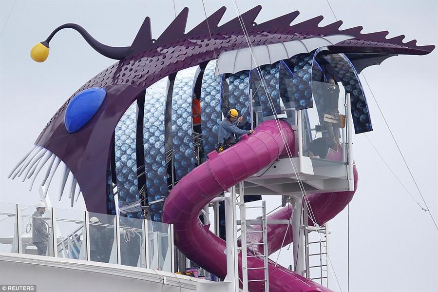 ويمكن لعشاق المغامرات استغلال أعلى مزلاق في عرض البحر، إذ تضم "هارموني" مزلاقًا عملاقًا بمسافة 30 مترًا، يأخذ المغامرين من الطابق السادس عشر وحتى الطابق العاشر.
