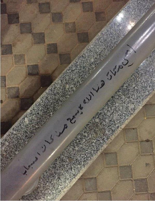 صورة لعبارة مؤثرة "أمي ماتت هنا، الله لا يسامح من كان السبب"، ربما كتبها طفل أو طفلة على مدخل مستشفى الأمير متعب في مدينة سكاكا، بعدما توفيت والدته، وقد دعت المستشفى كاتب العبارة إلى التواصل معها لاستجلاء الحقيقة.