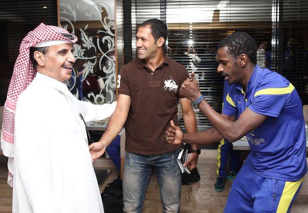 والتقى قائد الإسماعيلي المصري الحالي، الأمير فيصل بن تركي، رئيس نادي النصر وعدد من لاعبي الفريق، قبل المباراة الهامة، وحرص اللاعب شايع شراحيلي، على إضفاء جو من المرح في وجود لاعب الفريق السابق.