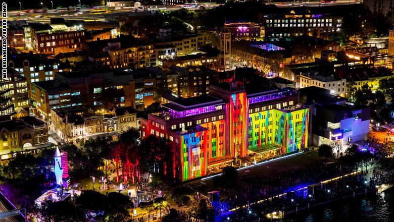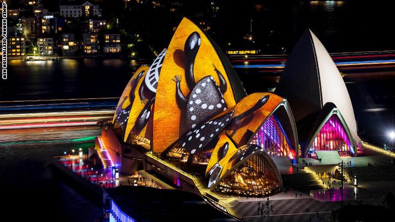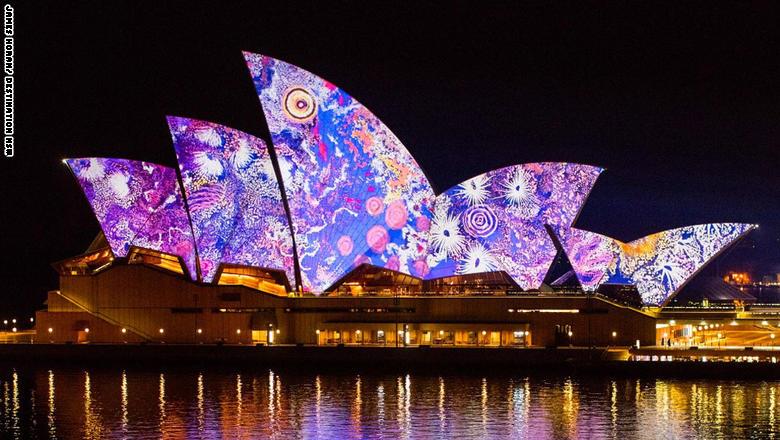 تحول المبنى الأكثر شهرة في أستراليا، أي دار الأوبرا في سيدني، إلى لوحة "كنفاس" متعددة الأوجه تعرض رسومات متحركة من أعمال فنانين من السكان الأصليين الأستراليين، مثل الفنان دوني وولاغودجا.
