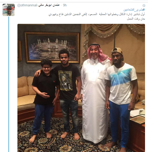 وكانت الجماهير الاتحادية، قد تداولت عبر مواقع التواصل الاجتماعي خلال الساعات الماضية، صورة لرئيس نادي الاتحاد السابق مع الثنائي المولد وعسيري، حيث أعطت الصورة دلالة لدى الكثيرين بأنّ اللاعبين في طريقهما لتجديد عقديهما مع النادي.
