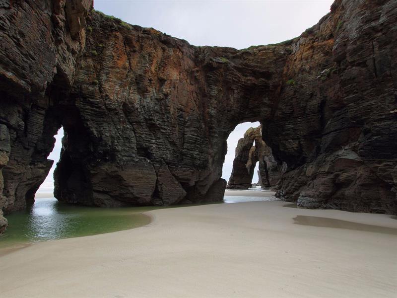 شاطئ الكاتدرائيات في ريباديو في منطقة غاليسيا الإسبانية، وقد سُمي بذلك بسبب التكوينات الصخرية الممتدة على رماله والتي تشبه أقواس الكاتدرائية، تكونت هذه التشكيلات بفعل التآكل الذي سببته المياه والرياح، يكون منظرها رائعًا خلال فترة انخفاض المد، حيث يُمكن استكشاف العديد من الكهوف البحرية في المنطقة.