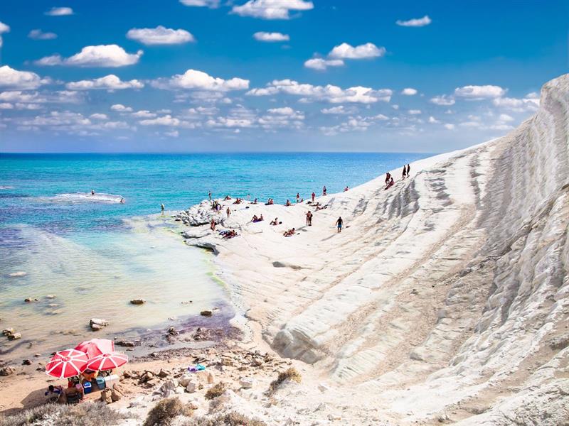 شاطئ سكالا دي تورتشي في مقاطعة أغريجنتو الإيطالية، وهو عبارة عن جرف أبيض تآكل بفعل الأمواج حتى تحول إلى سلالم جيرية، مما يسمح للزائرين بالتنزه على درجاتها حتى الوصول إلى الشاطئ في قاعدتها.