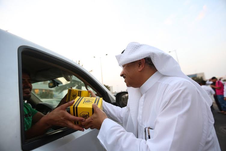 وأظهرت مقاطع فيديو وصور تم تداولها على مواقع التواصل الاجتماعي رئيس نادي الاتحاد وهو يقوم بتوزيع وجبات الإفطار التي حملت شعار الاتحاد على مرتادي الطرقات، بحضور عدد من مسؤولي وأعضاء شرف النادي.