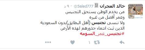 وغرد خالد العجران: “من يخدم الوطن يستحق التجنيس.. وعمر أفضل من غيره، ولا ننسى تجنيس (أهل البطايق) بدون السعودية، الذين ثبت انتماء جذورهم لهذه الأرض”.