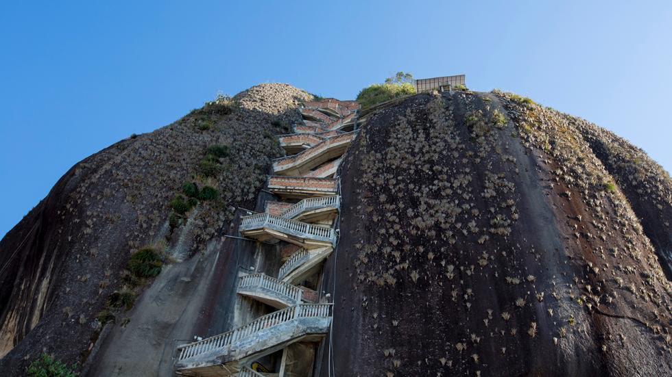 1- Rock of Guatape: يقع في كولومبيا، ويبلغ طول هذا الدرج المتعرج حوالي 200 متراَ، ويتطلب صعود 649 درجة لبلوغ أعلى صخرة "جواتاب" في "كولومبيا"، وهي صخرة عتيقة يقدر وزنها بـ 10 ملايين طن وعمرها بأكثر من مليون عام.