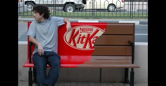 طرحت "كيت كات" لصناعة الشيكولاتة إعلانها، حملة علي هيئة مقعد انتظار بالشوارع العامة، مغطى بقطعة شيكولاته مفتوحة ومنصهرة من أحد جانبيها.