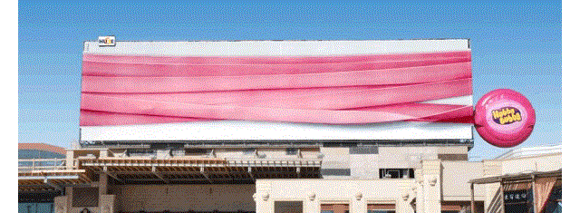 وفي إعلان موجهه للأطفال قررت شركة انتاج حلوي "Hubba Bubba" اطلاق حملة إعلانية عن طريق اللافتات الخارجية لاظهار الحجم الكبير للحلوي وكأنه تقول أن الحلوى لن تنتهي.