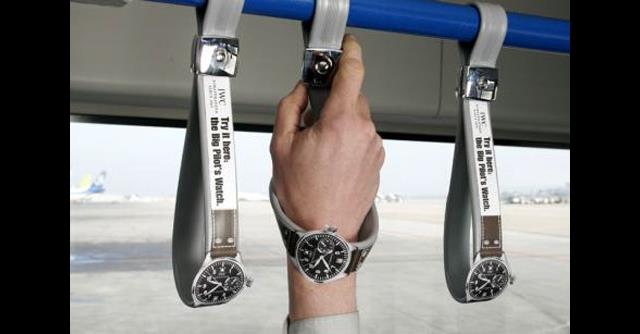 أما الشركة المصنعة للساعات السويسرية الشهيرة "IWC" أعلنت عن نفسها عن طريق وضع منتجها علي مقابض اليد المخصصة للركاب في حافلات نقلهم إلي المطارات.