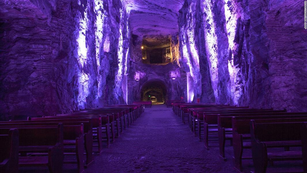 5- "Salt Cathedral of zipaquira" – كولومبيا: صممت داخل منجم للملح يقع على عمق ما يقرب من مائتي متر تحت سطح الأرض.