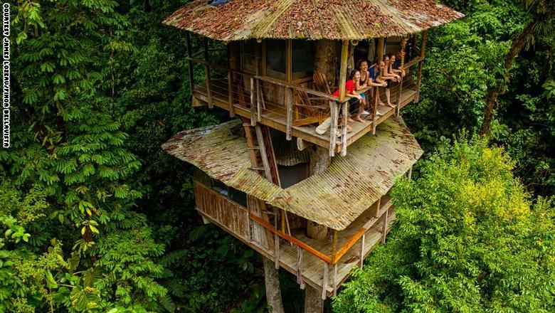 أما بيوت الأشجار التابعة لـ "Pinca Bellavista" في كوستا ريكا تتميز بامتدادها العمودي، إذ يصطف 50 منزلاً، يرتبط مع بعضها باستخدام الأسلاك الحديدية والجسور المعلّقة