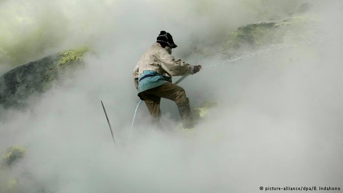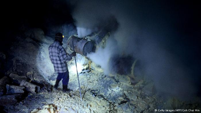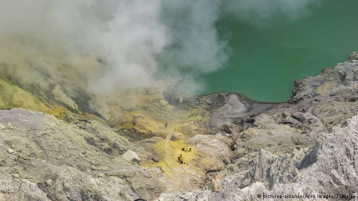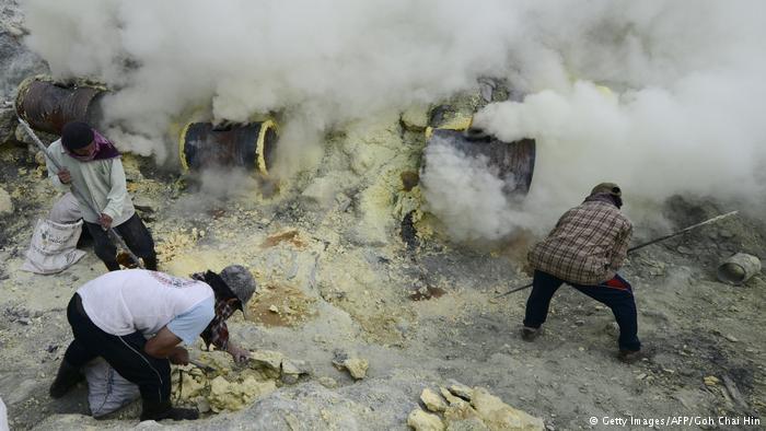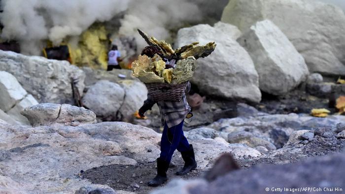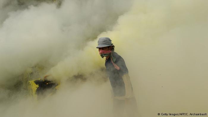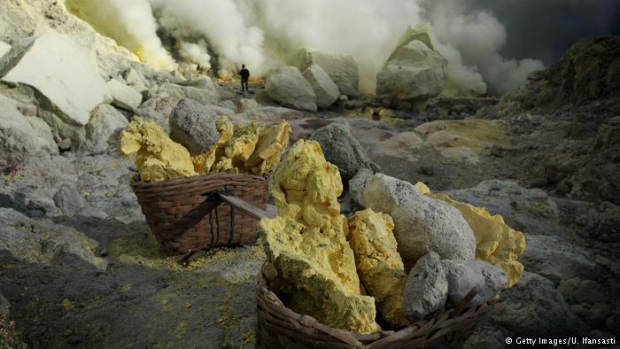 الغبار، والأوساخ، والحرارة المرتفعة: إزالة الكبريت في إندونيسيا تعتبر أصعب مهنة في العالم. على حواف بركان نشط في جاوة الشرقية يخاطر العمال بحياتهم من أجل إزالة المادة الصفراء.