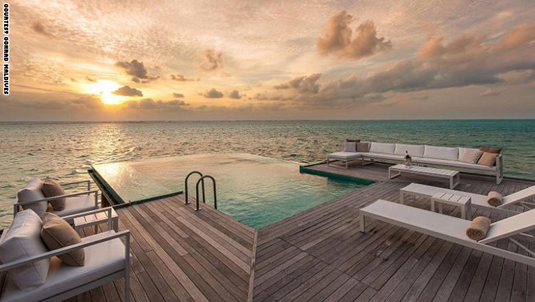 فندق "Conrad Maldives' Sunset Water Villas" في جزر المالديف في المحيط الهندي.