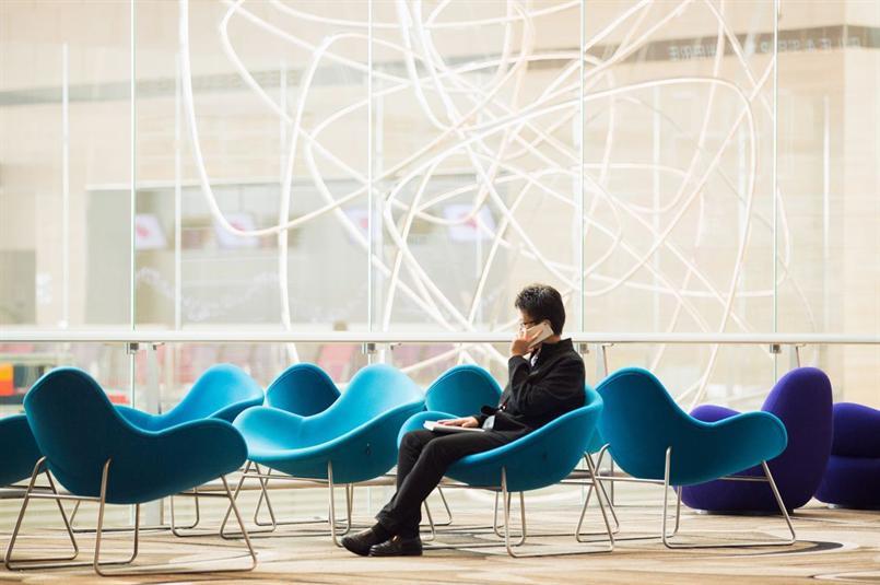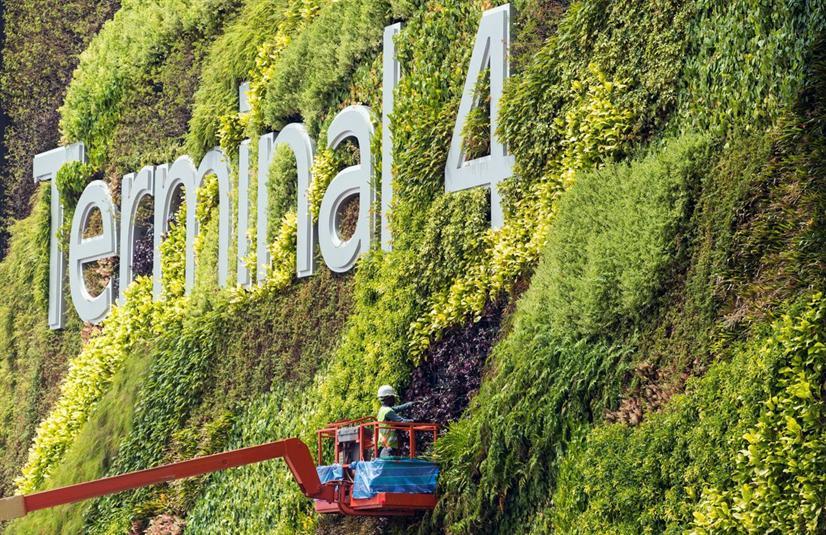 حائط مثبت عليه شاشات "LED" بمساحة خمسة أمتار صممت لتسلية المسافرين أثناء الانتظار