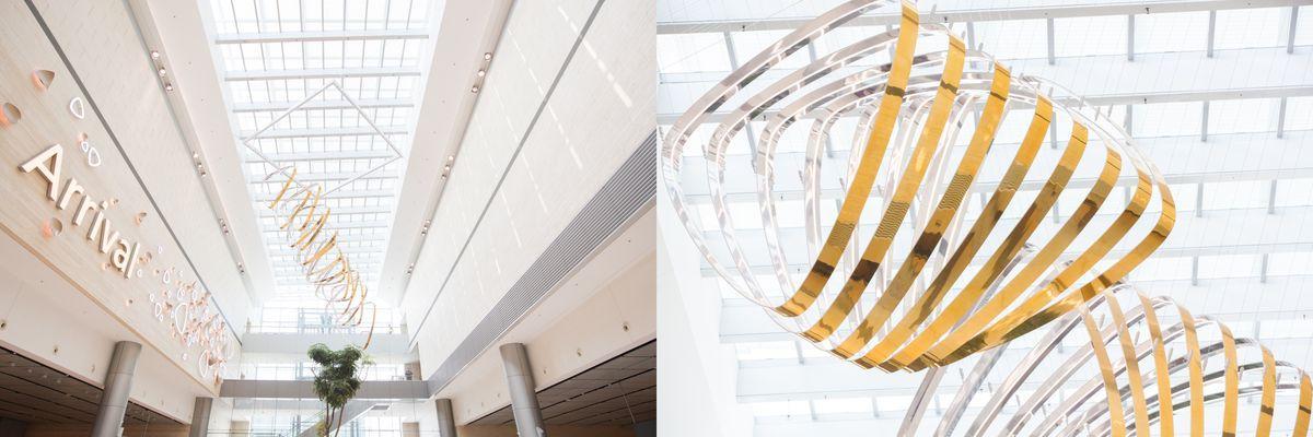 عمل فني تحت اسم "الطيور" وهو عبارة عن شكل معدني يرمز إلى العلاقة بين السماء والأرض ويربط بين الواقع والخيال ويعرض في منطقة صالة الوصول