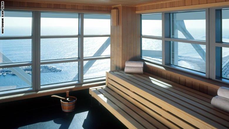 على الطابق الـ43 من فندق برشلونة للفنون، تقع هذه الساونا "الزجاجية" والتي تتمتع بإطلالات خلّابة للبحر الأبيض المتوسط وساحل برشلونة.