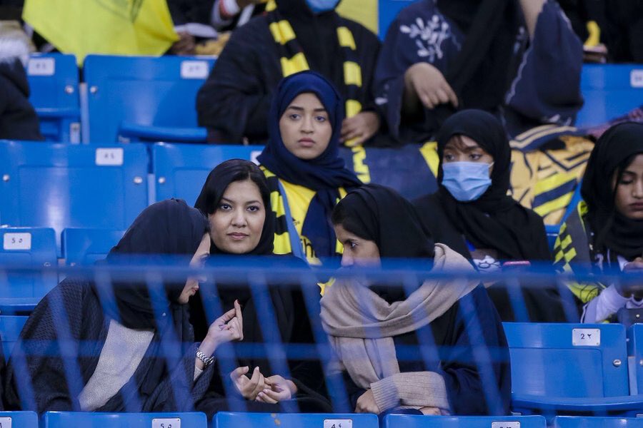 وأظهرت الصور الأميرة ريما وكيل الهيئة العامة للرياضة للتخطيط والتطوير، وسط الجمهور النسائي الذي حضر لمشاهدة المباراة في مدرجات الأستاد، في ثاني مباراة تشهد حضور العوائل بعد مباراة أمس بين الأهلي والباطن.