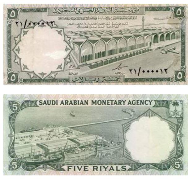 بلون أخضر، ويتوسط الوجه صورة مبنى مطار الظهران، أما الظهر فتبدو عليه صورة ميناء الدمام البحري.