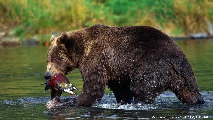 الدب البني... الدببة هي أكبر الحيوانات اللاحمة في العالم. قد يصل طول الدب إلى 3 أمتار عندما يقف على رجليه الخلفيتين. من الممتع مشاهدة الدب وهو يصطاد السمك.