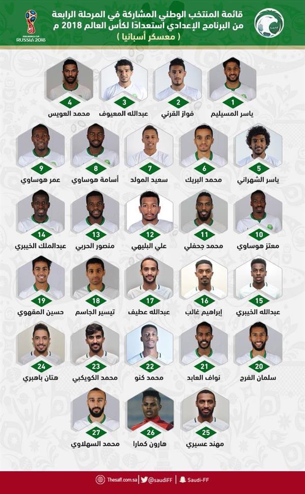 قائمة المنتخب السعودي المشاركة في المرحلة الرابعة من البرنامج الاعدادي لكأس العالم ٢٠١٨ "معسكر اسبانيا"