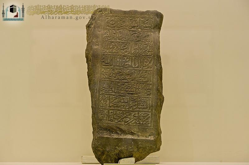 5-من زخارف المسجد الحرام، زخرفة من حجر الشميسي كانت مثبتة في أروقة المسجد الحرام نقش عليها البسملة وسور المعوذات يعود تاريخها إلى القرن الثاني عشر الهجري.