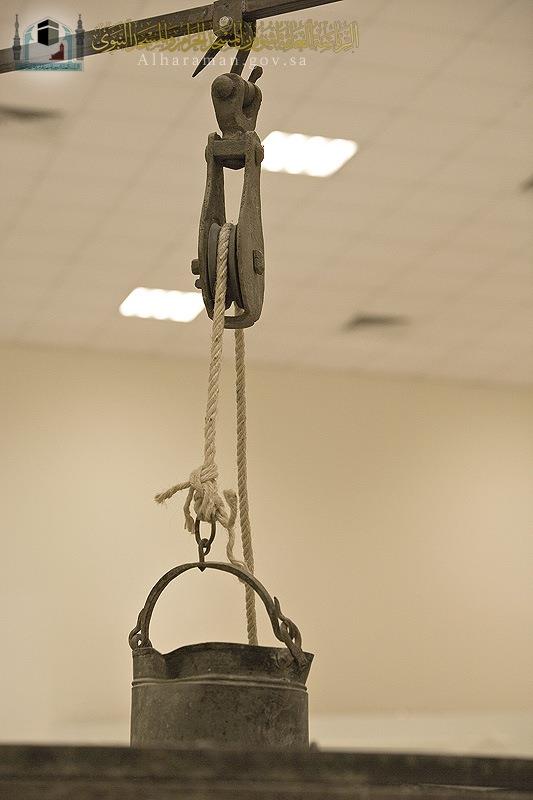 3-بكرة بئر زمزم - بكرة لرفع ماء زمزم يعود تاريخها إلى القرن الرابع عشر الهجري بالإضافة إلى سطل من النحاس مؤرخ عام 1299هـ كان موجوداً في بئر زمزم.