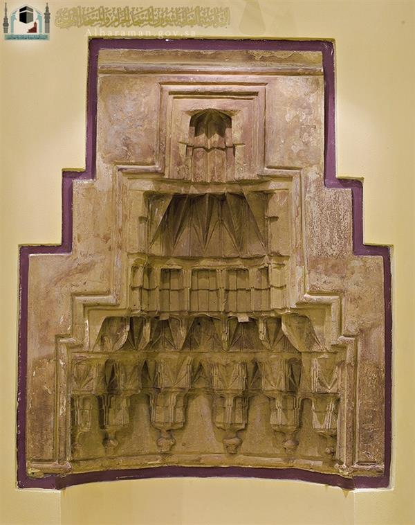 6-من زخارف المسجد الحرام، مقرنصات على حجر الشميسي موجودة فوق إحدى مداخل الحرم يعود تاريخها للقرن الثني عشر الهجري.