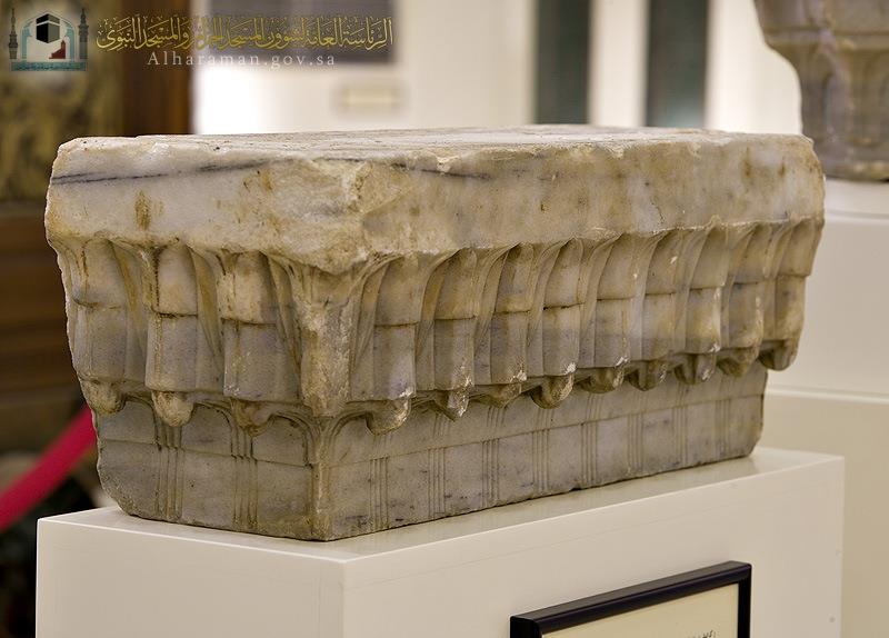 10-من زخارف المسجد الحرام، كرنيش رخامي من منبر الحرم المصنوع في القرن العاشر الهجري في عهد السلطان سليمان القانوني.