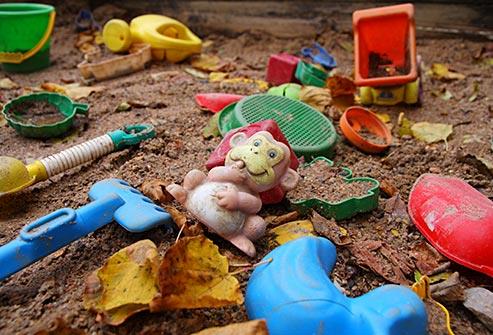 يتم تنظيف ألعاب الأطفال مثل الأرجوحة وأماكن الإنزلاق، لكن نادرا ما يتم تنظيف أرضية الملاعب، ويعد صندوق الرمال الذي يلعب الأطفال فيه من أسوأ البقع، فبه جراثيم تعادل 36 مرة أكثر من الموجود في صواني المطاعم، لأن البكتيريا تنشط في الأماكن الدافئة والرطبة. اصطحب معاك معقم اليد والمناديل.
