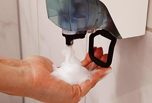 موزعات الصابون تُعد هي الأخرى أرضًا خصبة للبكتيريا. فتواجدها على الحوض، يمكن أن يجعلها عرضة للجراثيم، لذا اغسل يديك لمدة 20 ثانية على الأقل، أو احمل معك معقما. قبل أن تصل إلى مقبض الباب، فكر في عدد الأشخاص الذين لا يغسلون أيديهم بعد استخدام الحمام. تقول مراكز السيطرة على الأمراض إن 31٪ فقط من الرجال و65٪ من النساء يقومون بذلك.