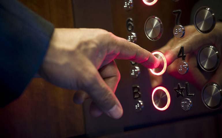 إذا كنت تخشى من الجراثيم عندما تضطر إلى لمس مقبض الباب، فكن حذراً من أزرار المصعد أيضاً، يمكن أن تستعمل مرفقك في ضغط الزر، أو استخدم السلالم، أو استخدم المطهر.