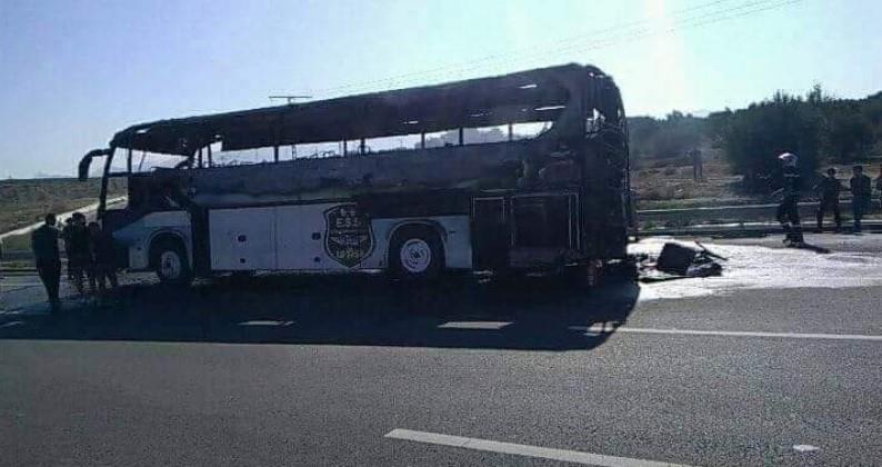احترقت حافلة نادي وفاق سطيف الجزائري لكرة القدم اليوم الأحد، وهي في طريقها إلى مطار الجزائر الدولي، لنقل بعثة الفريق العائدة من المغرب.