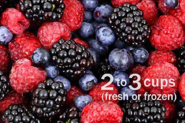 الألوان التي تعطي العنب البري والفراولة ألوانها الغنية تكون لها فائدة جمة للأوعية الدموية وهي مادة الأنثوسيانين، وهي مركب طبيعي يمكن أن يساعد جدران الشرايين على أن تصبح أوسع وأكثر مرونة في خفض ضغط الدم وتحسين صحة قلبك. تناول يومياً 2-3 أكواب، سواء فواكه مجمدة أو طازجة.