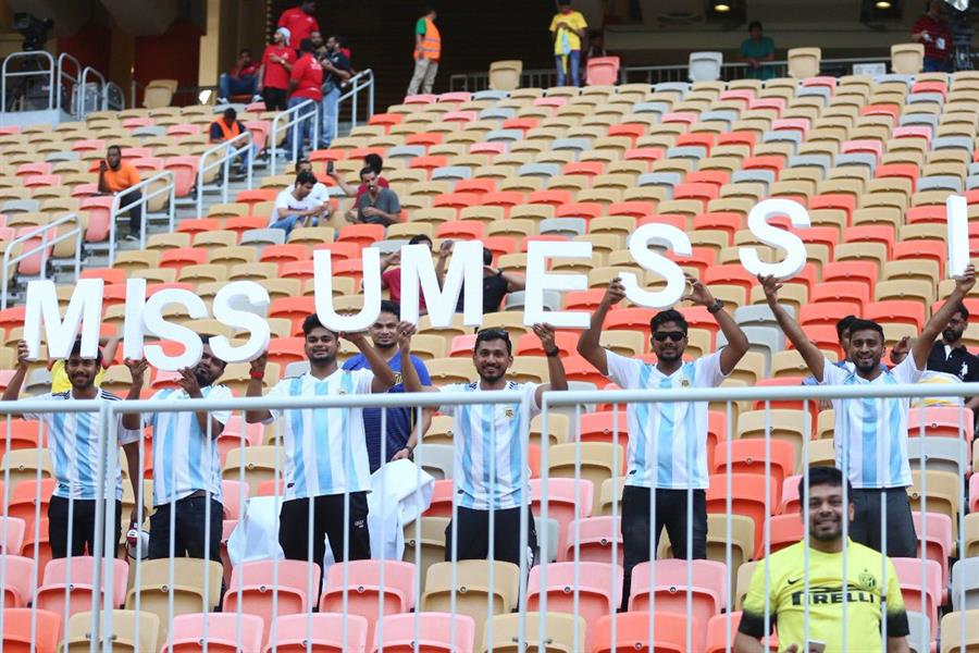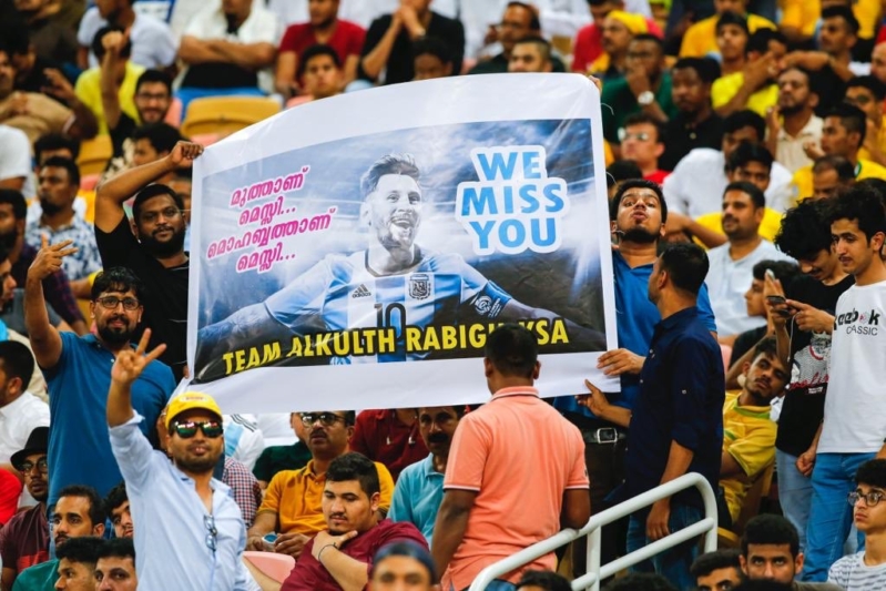 وكانت الجماهير الحاضرة في المباراة ركزت على غياب النجم ميسي في مباراة البرازيل والأرجنتين، حيث رفع بعض المشجعين من قارة آسيا لافتة مكتوبة باللغة الإنجليزية وأخرى بلهجة آسيوية تعني” نفتقدك يا ميسي”.