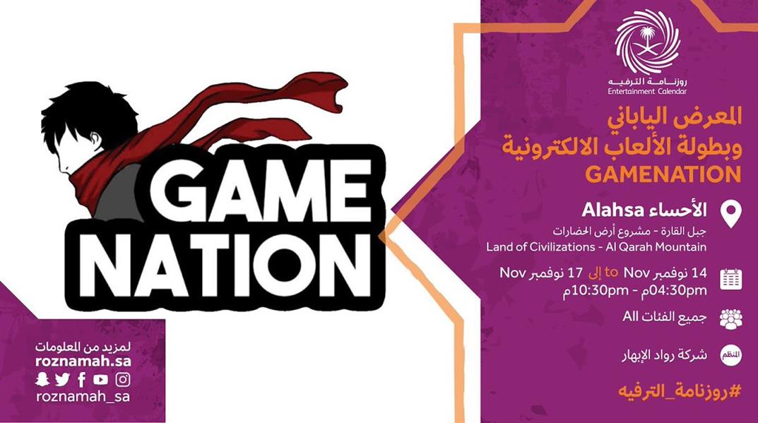 جيم نيشين: يعد أكبر حدث في الأحساء لمحبي الألعاب والأنميشن، ويتضمن مسابقات، وعروض أنميشن ومهرجاناً يابانياً، وهدايا ومفاجآت ضخمة، وذلك يومياً بجبل القارة خلال الفترة "14 – 17 نوفمبر"، يومياً من الساعة 4:30 مساء وحتى 10 مساءً.