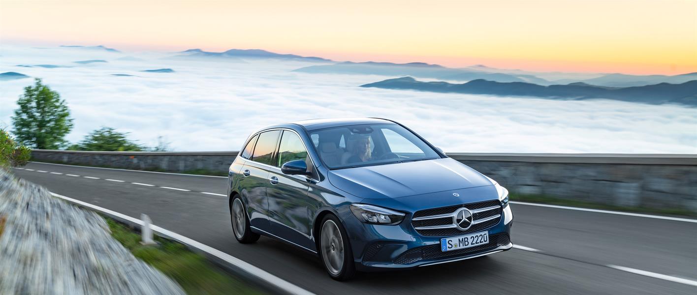 بي كلاس: تنتمي إلى فئة المركبات ميني فان العائلية، ويأتي هذا الموديل مع تقنيات قيادة شبه ذاتية مستعارة من سيارات S Class، ومن المتوقع أن يتم إطلاقها في منتصف العام، وستزود بمحرك رباعي سعة 1.3 لتر يعمل على البنزين، وهناك نسخ بمحركات تعمل على الديزل.