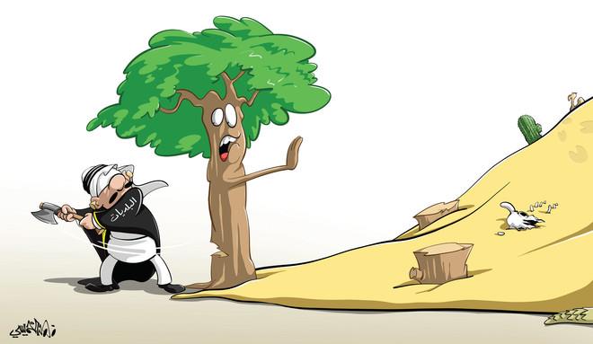 وفيما يلي نقدم لكم باقة من الكاريكاتيرات المنشورة حول ظاهرة الاحتطاب: