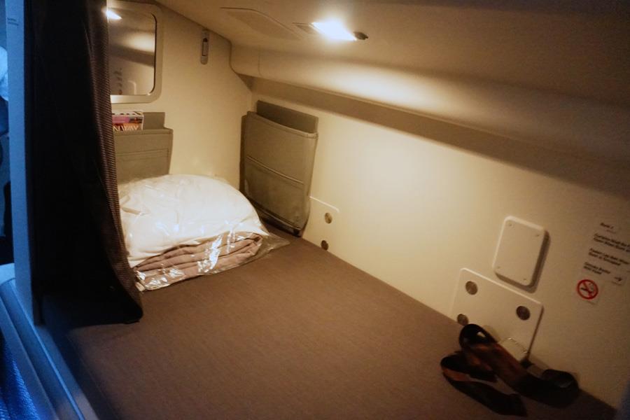 وحدات النوم ضيقة وليس لها نوافذ وهي ثماني وحدات أو سبع وفقا لنوع الطائرة، وفي الصورة وحدات النوم في بوينج 787 دريملاينر
