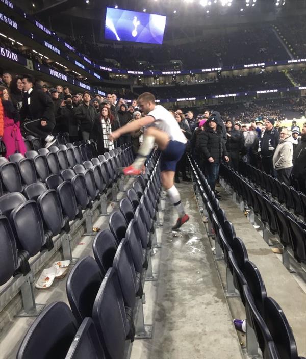 تورط إيريك داير لاعب وسط توتنهام هوتسبير في مشاجرة مع أحد الجماهير بعد خسارة فريقه بركلات الترجيح أمام نوريتش سيتي في كأس الاتحاد الإنجليزي لكرة القدم اليوم الأربعاء.