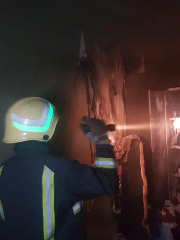 وأظهرت صورٌ الجهود المبذولة في إخماد الحريق، حيث تبيّن أنه اندلع بإحدى غرف المنزل بسبب تماس كهربائي بجهاز التكييف، دون وقوع إصابات.