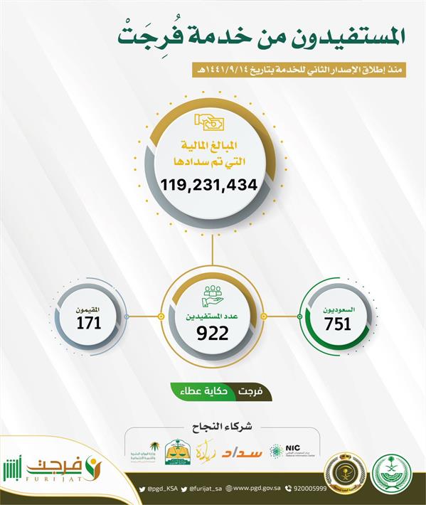 أعلن المتحدث الإعلامي للمديرية العامة للسجون، اليوم (الجمعة)، عن سداد مديونية بأكثر من 119 مليون ريال لـ922 مواطناً ومقيماً، وذلك عبر خدمة "فرجت" على منصة وزارة الداخلية "أبشر".