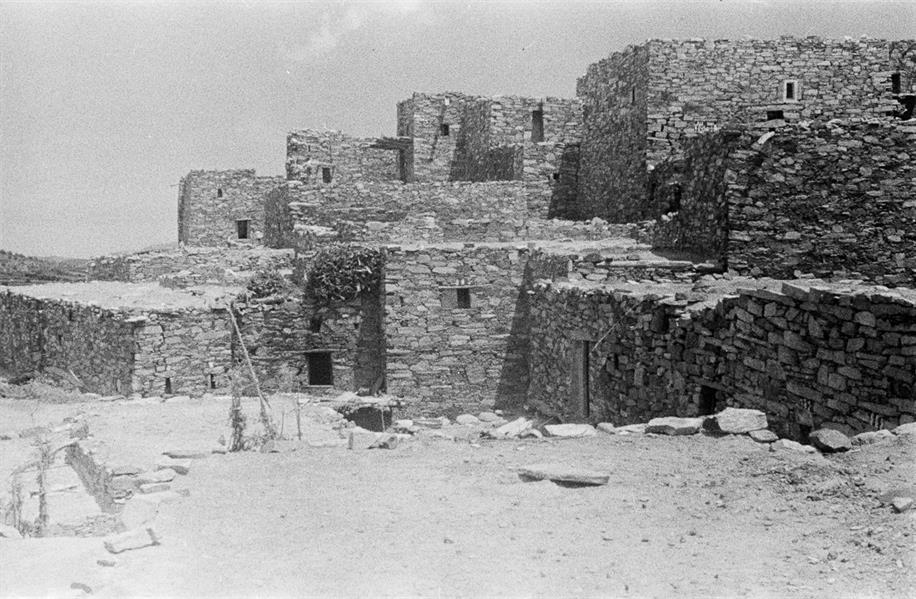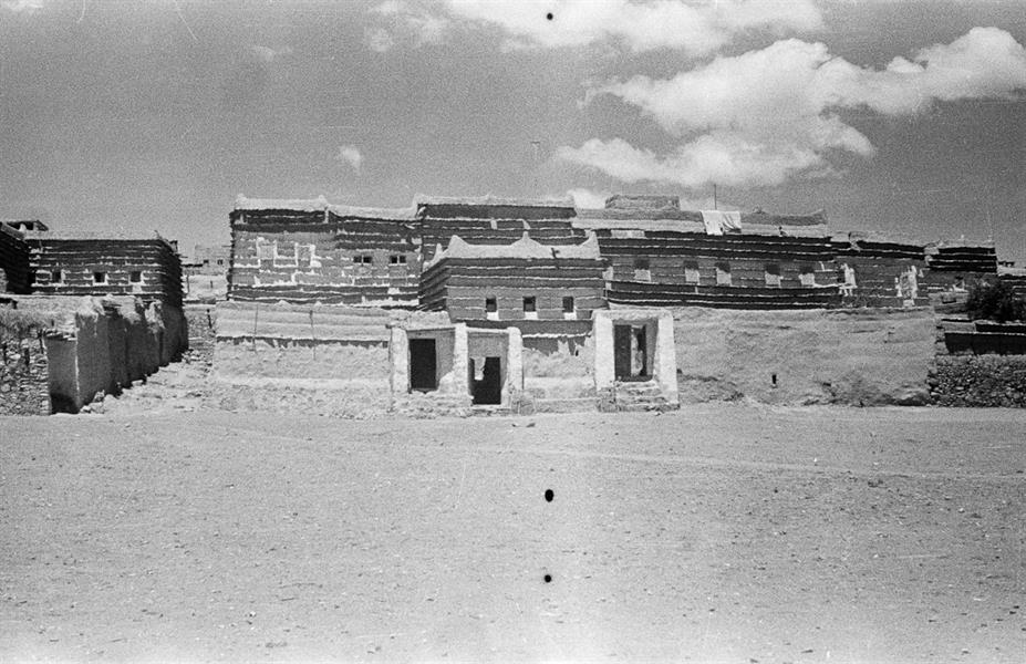 1- مبانٍ حجرية في قرية السودة على شكل مربع مع نوافذ صغيرة وأسقف مسطحة