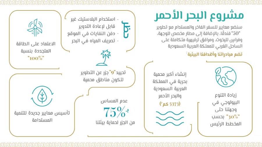 وقالت الشركة إن مبادراتها البيئية تتضمن تحييد 9 جزر عن التطوير، وزيادة التنوع البيولوجي في الوجهة البحرية حتى 30%، وإنشاء أكبر محمية بحرية في المملكة بمساحة تقارب 3.4 ألف متر مربع.