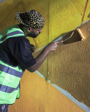 وأظهر فيديو مشاركة مجموعة من الفتيات والشباب المبدعين في رسم الجدران والأنفاق.
