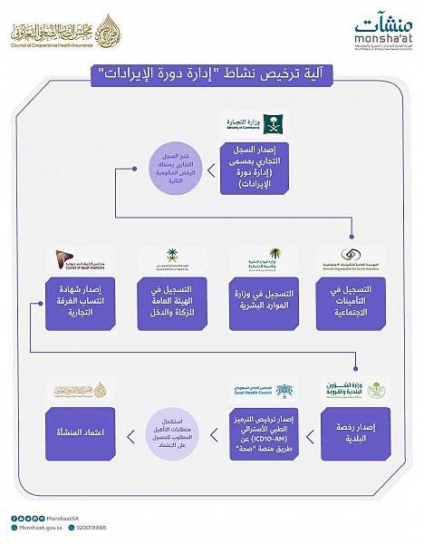 وأبانت الهيئة أن نشاط إدارة دورة الإيرادات يتلخص في أن تتعاقد منشأة صغيرة أو متوسطة مع مقدمي الرعاية الصحية مثل المستشفيات، المجمعات الطبية، وغيرها من الأنشطة الصحية، لتعمل على تنظيم الدورة المستندية وتقديم خدمة رفع المطالبات ومتابعتها ومعالجتها نيابة عن مقدمي الرعاية الصحية مع شركات التأمين لتحصيل مبالغ مالية مقابل الخدمات الصحية المقدمة للمؤمن لهم.