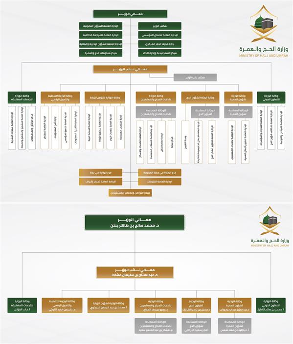 وبحسب الهيكلة الجديدة، فقد تم ربط وكالة الوزارة للتعاون الدولي ووكالة الوزارة للخدمات المشتركة، والإدارة العامة للإعلام والاتصال المؤسسي وإدارة محرك الحجز المركزي ومركز الإستراتيجية وإدارة الأداء والإدارة العامة للشؤون القانونية والإدارة العامة للمراجعة الداخلية والإدارة العامة للشؤون الإدارية والمالية ومركز معلومات الحج والعمرة بمعالي الوزير مباشرة.